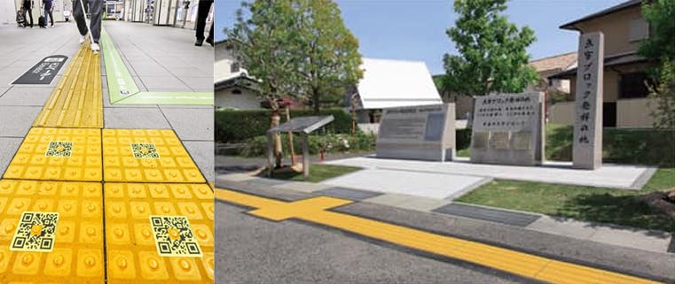 ここは盲目者が歩けるよう点字ブロックが初めて生み出され設置された地。